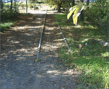 さらに進むと架線柱を支えるためか、コンクリートの支柱が線路を遮断しています。