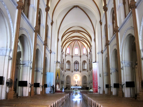 さすが元フランス領だけあって教会は素晴らしく、写真のステンドグラスもとても綺麗だが、左に写っているブルーのネオン管のマリア像は少々下品だ。 綺麗だけど。